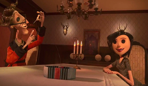 Em um ponto, Wybie dá a Coraline um presente estranho: uma boneca que se parece com ela.