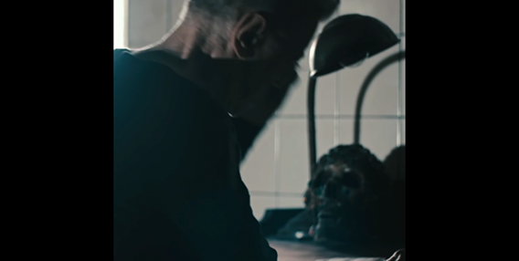 É este o Major Tom? Será que estamos vendo o seu lugar de descanso final? Uma menina abre o capacete do astronauta e encontra um crânio ornamentado.