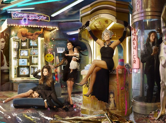 Se houvesse um prêmio para o cartão de Natal com menos cara de cartão de Natal na história do mundo, eu acredito que o cartão de Natal Kardashian 2013 levaria o prêmio. Dirigido pelo fotógrafo de moda elitista David Lachapelle, o cartão é uma soma bastante sombria e deprimente do mundo do entretenimento - uma indústria governada por uma elite sombria que está transformando a cultura popular em um terreno baldio tóxico preenchido com celebridades vazias, como as Kardashians.